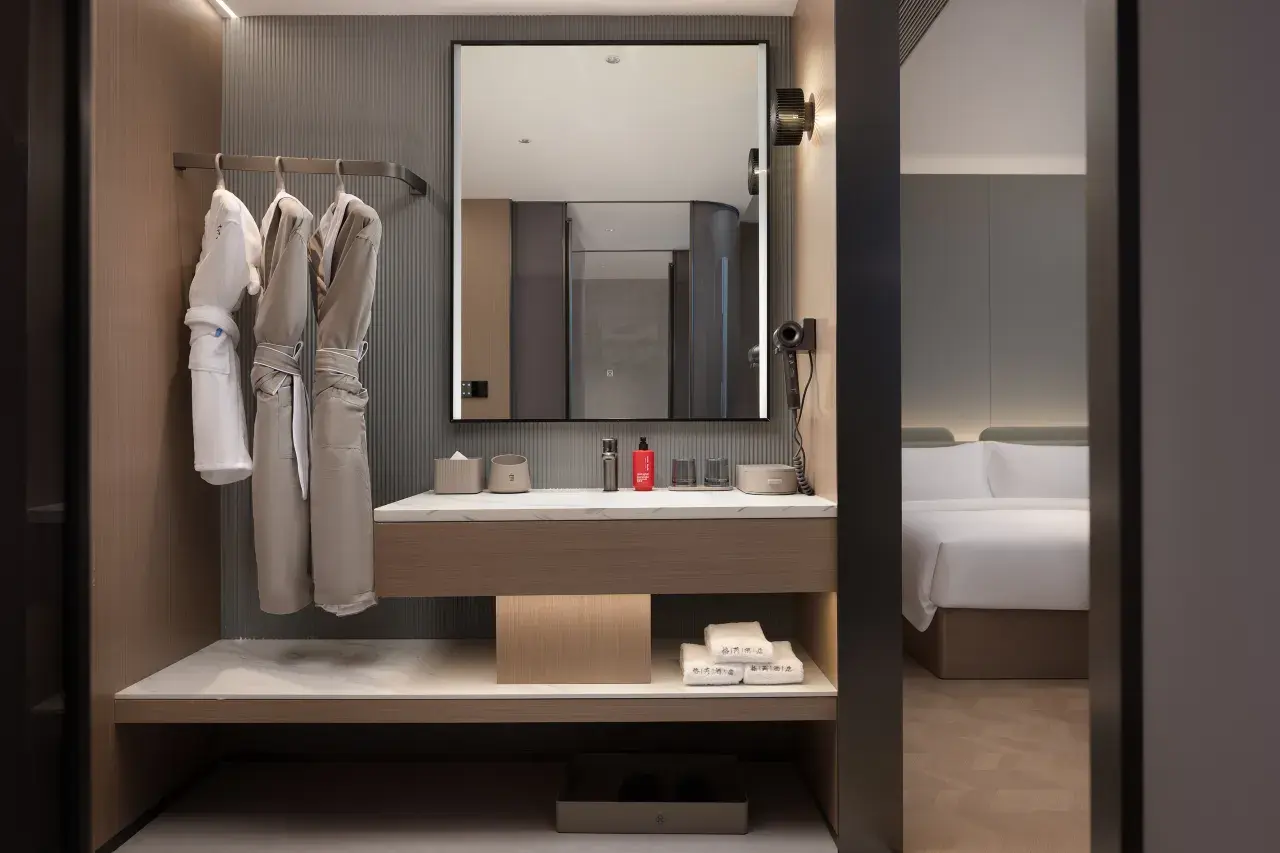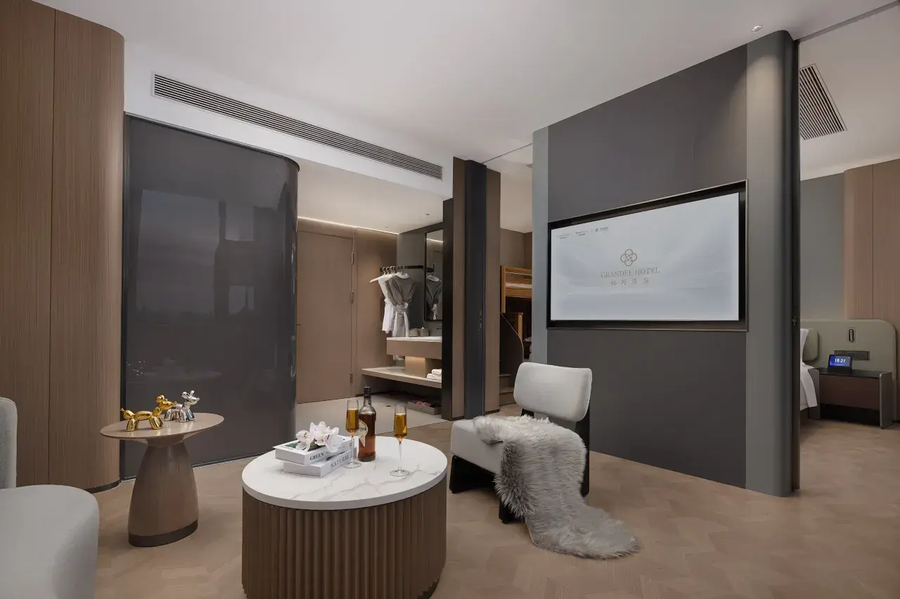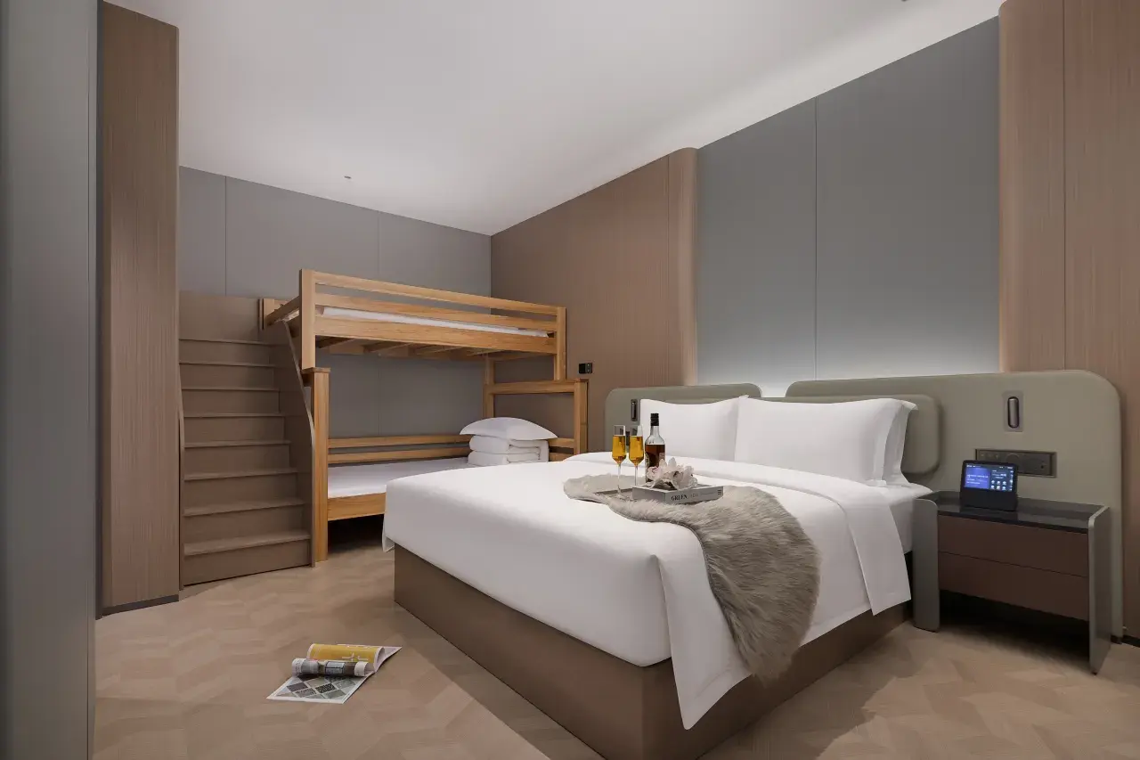 Experience comfort and convenience tailored for the whole family in the Comfy Family Room at the Grandee Hotel (Guangzhou Panyu Chimelong Safari Park Branch). Located at No. 463 Fushi Road, Panyu District, this room is specifically designed to accommodate larger groups or families visiting Guangzhou’s famous attractions.
