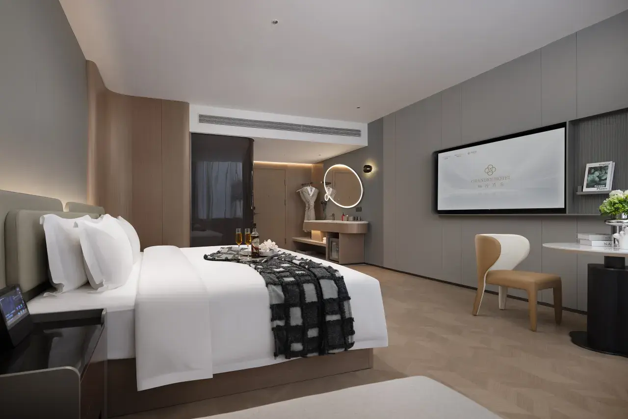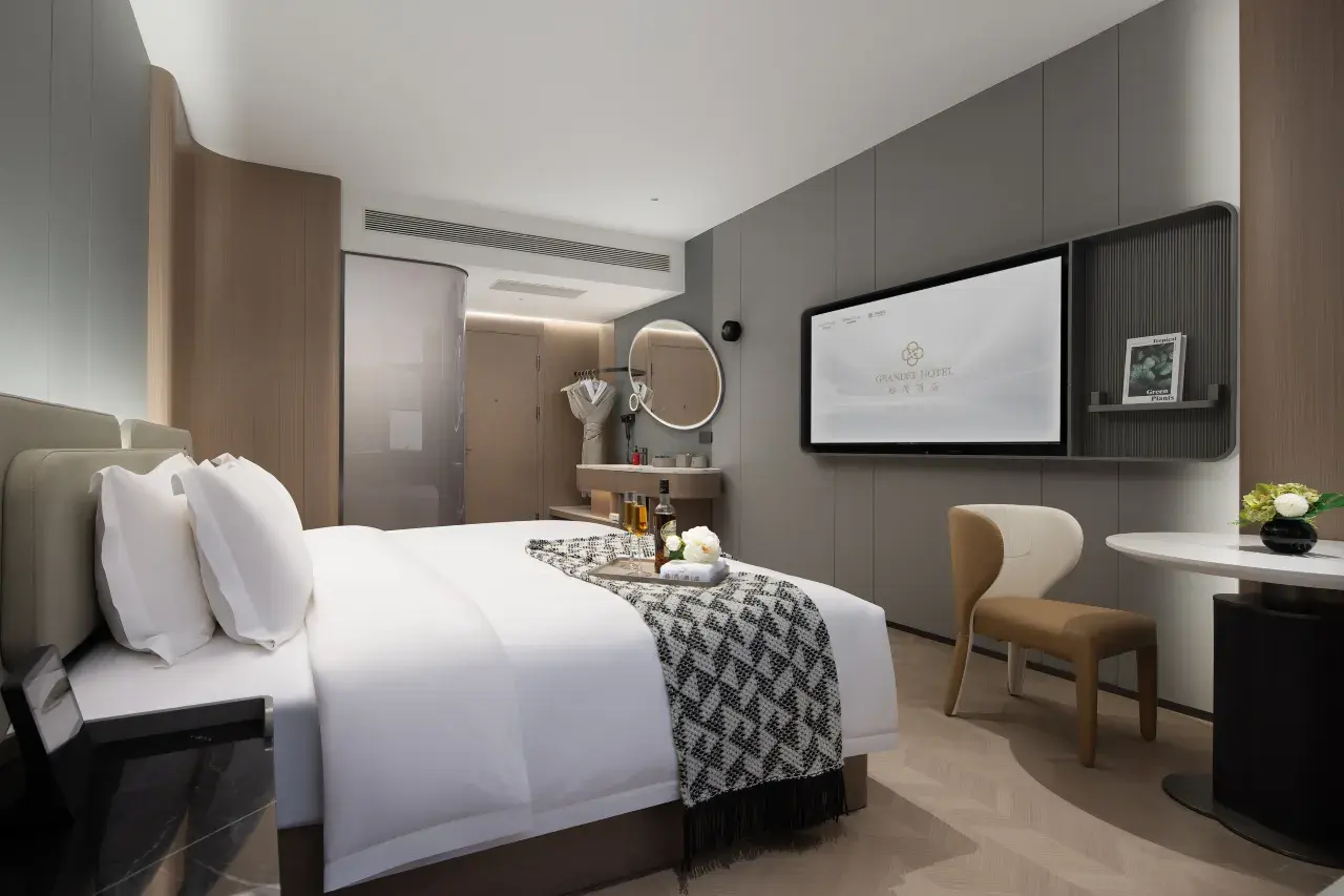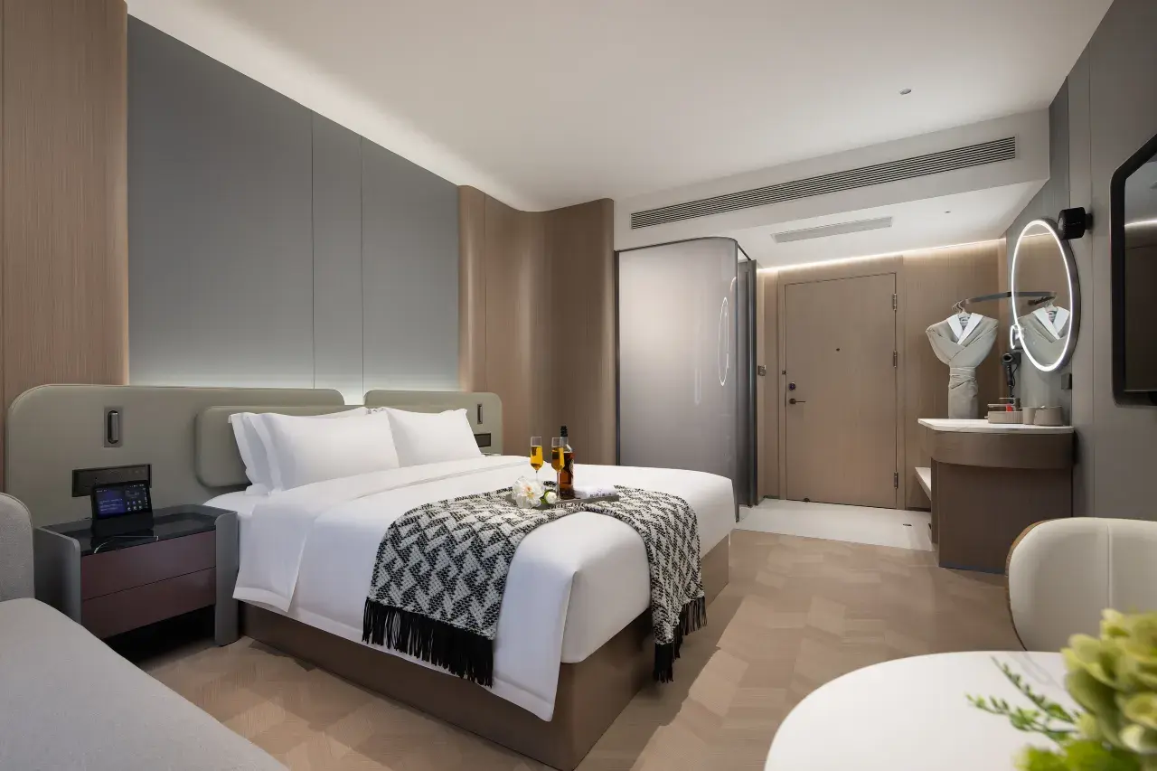 The Grey Superior King Room at the Grandee Hotel (Guangzhou Panyu Chimelong Safari Park Branch) offers a refined and intimate stay for solo travelers or couples. Located at No. 463 Fushi Road, Panyu District, this room provides a sleek, modern aesthetic across 26–30㎡ of living space on floors 4–6.